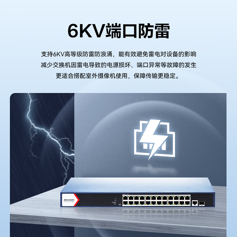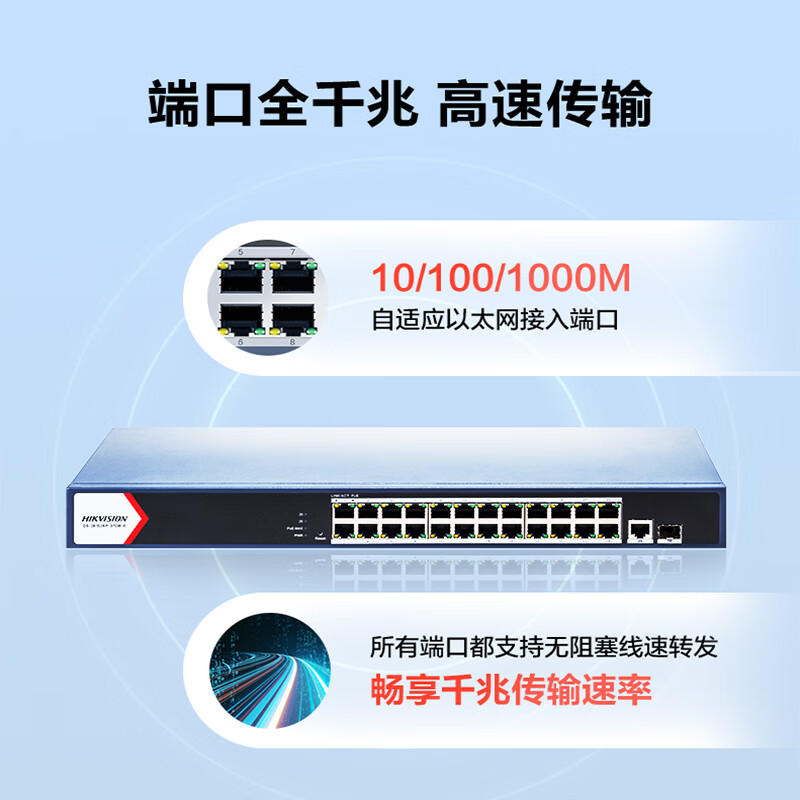 HIKVISION海康威视交换机16口POE 18口全千兆交换机网线分流网络集线分线器金属外壳POE交换机DS-3E0518P-E