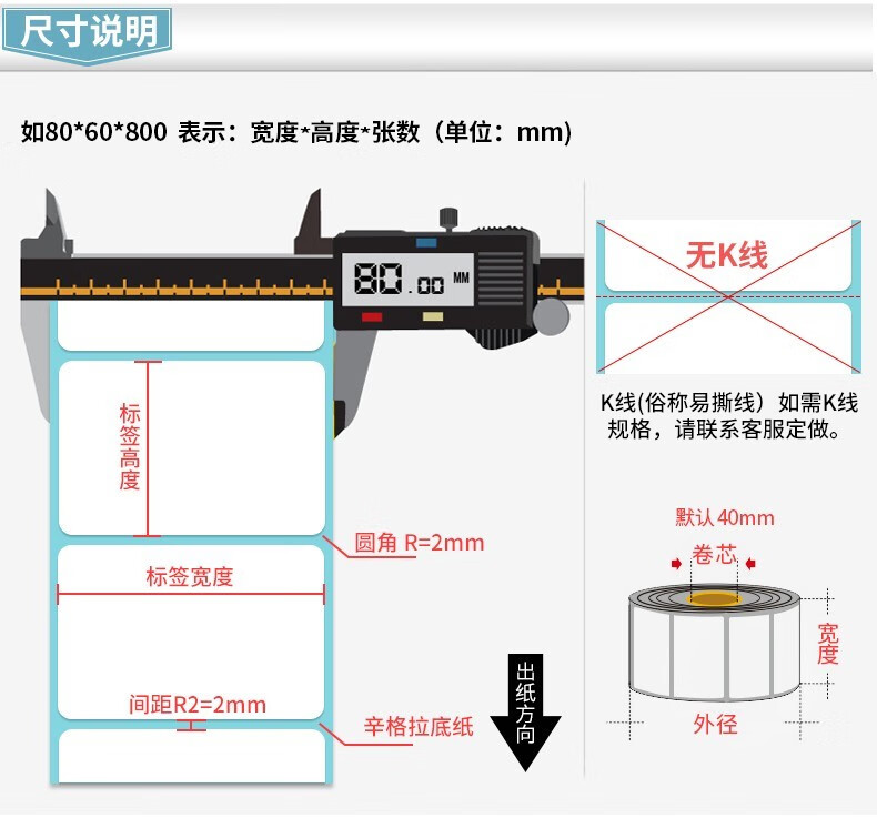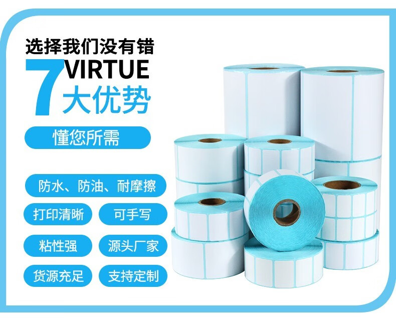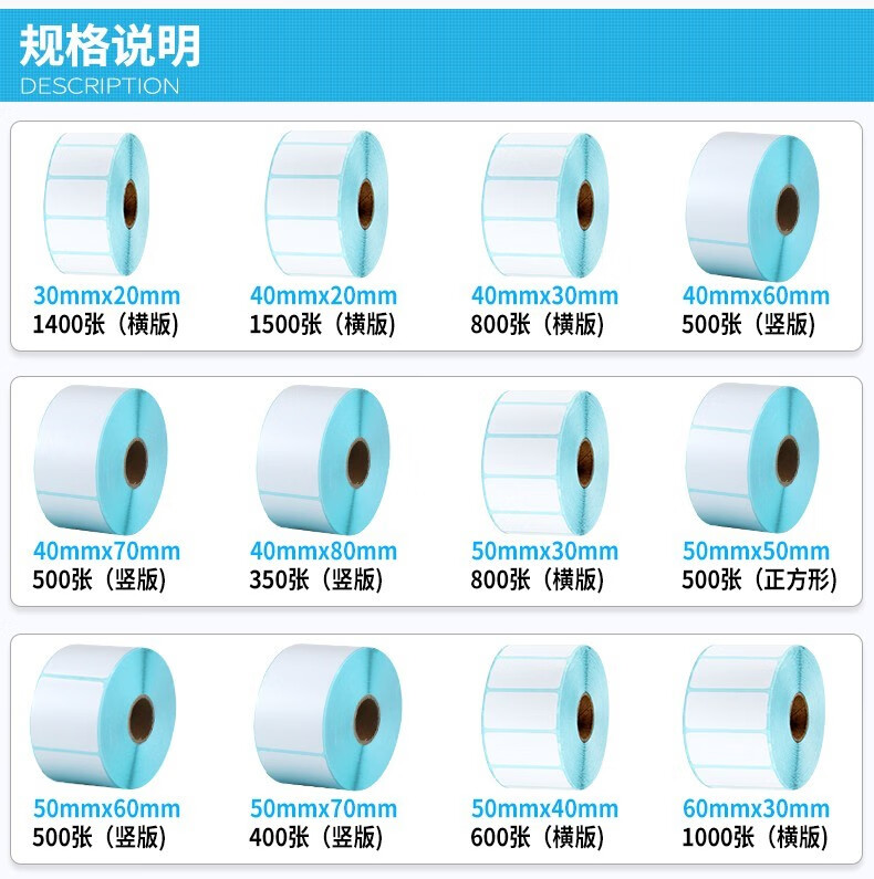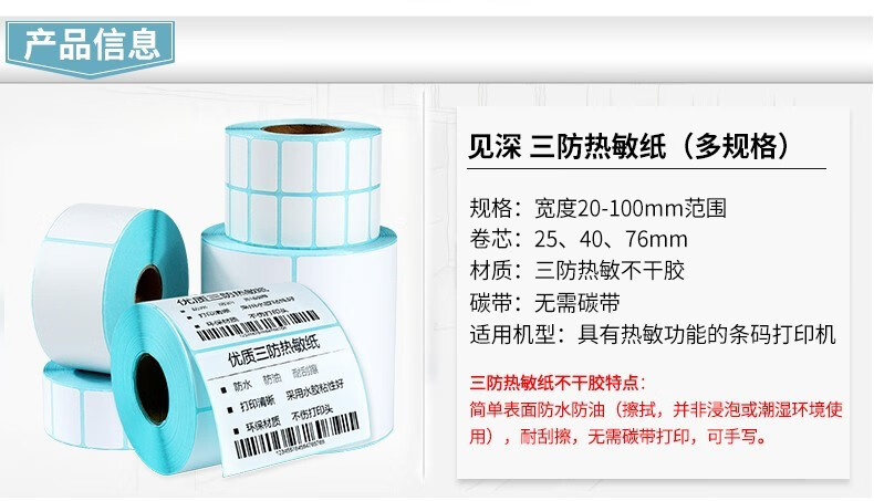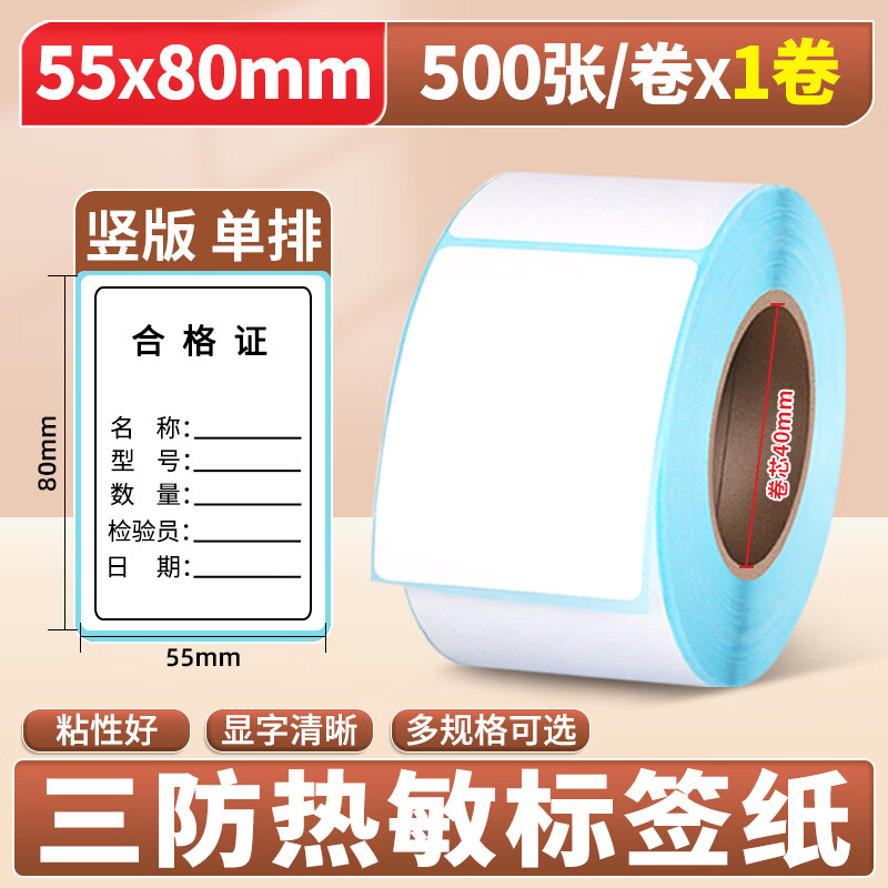 见深 空白三防热敏标签纸宽不干胶条码打印纸 55*80*500张单排竖版