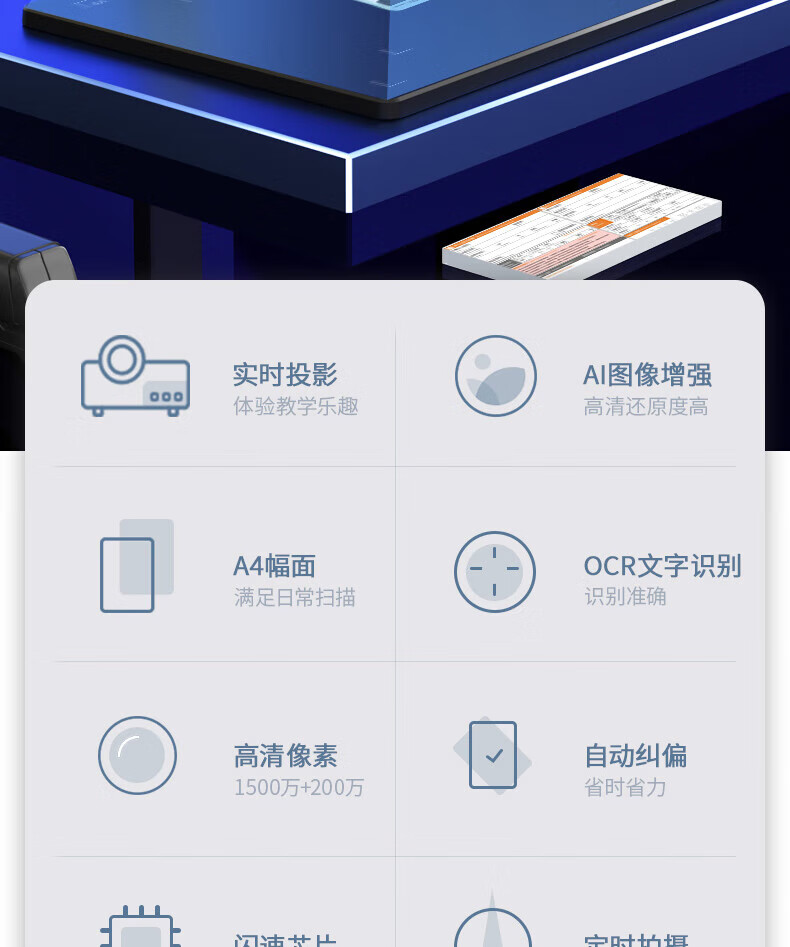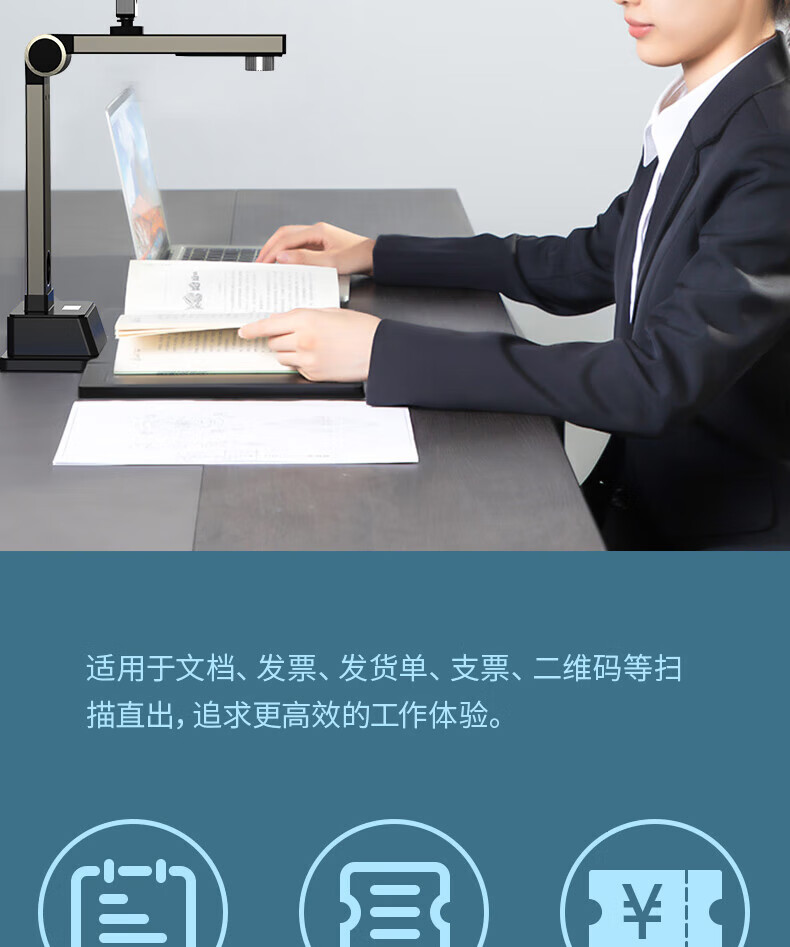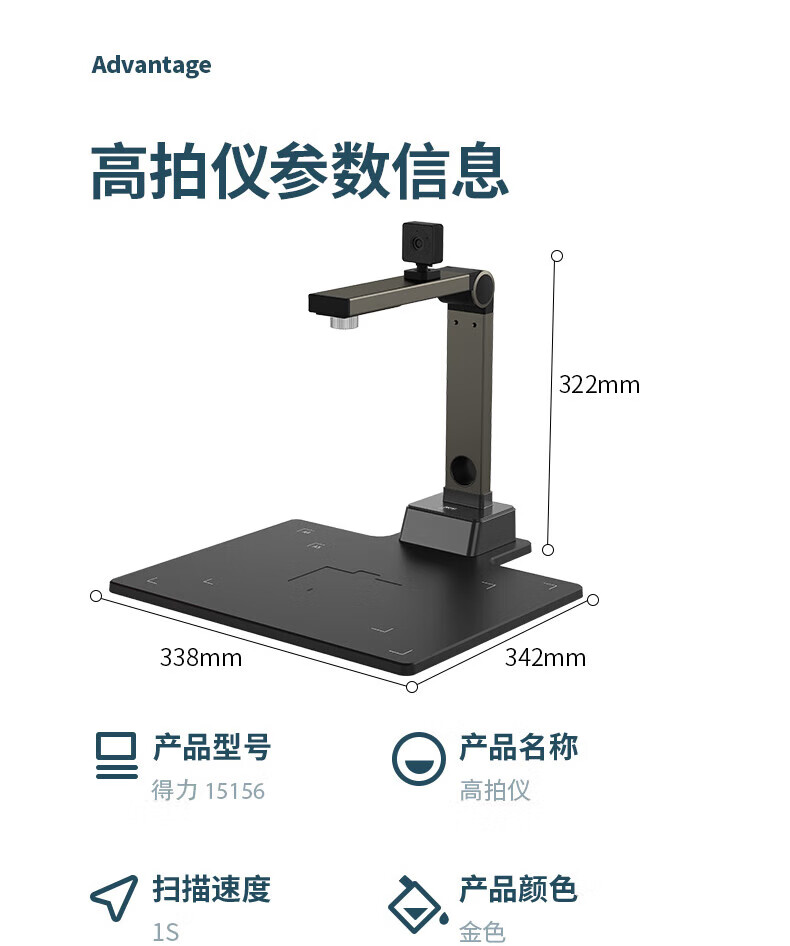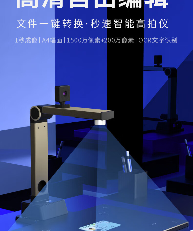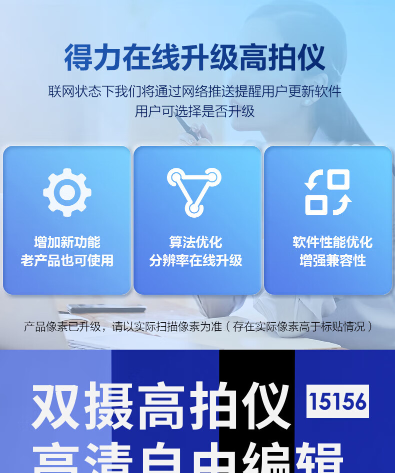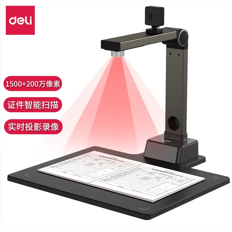 得力(deli) 高拍仪扫描仪 实时投影 办公文件文档连续扫描证件照片身份证 1500万+200万双摄 A4硬底 15156