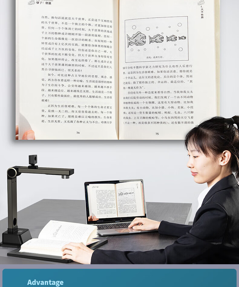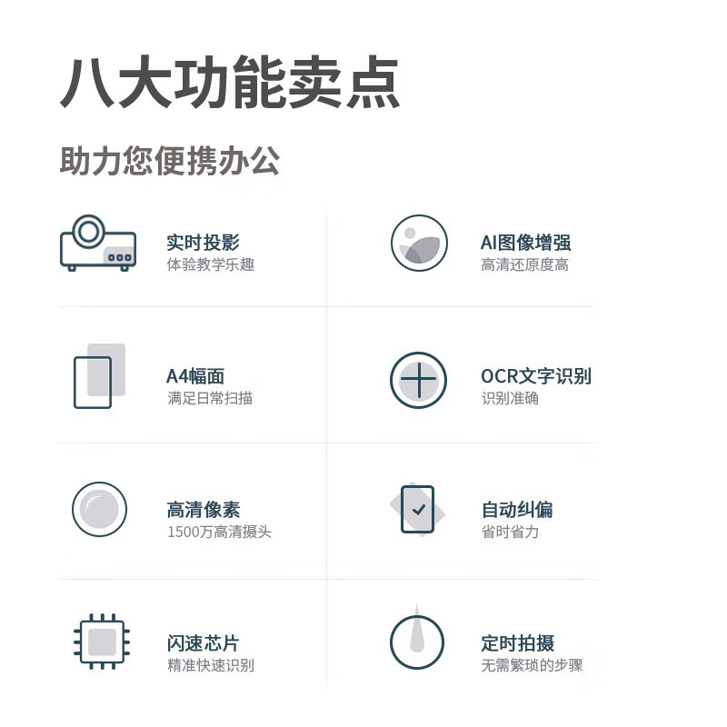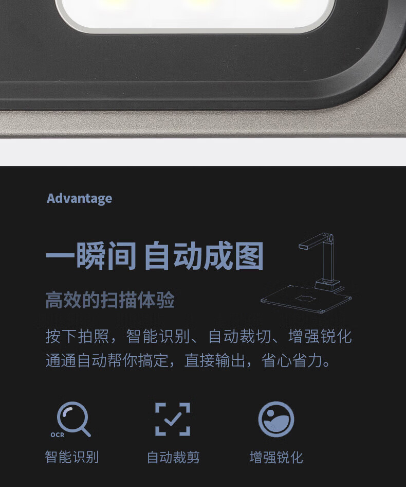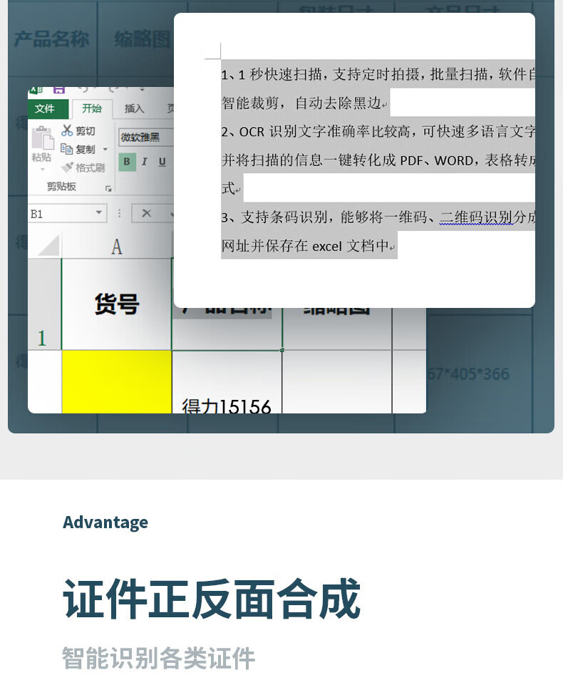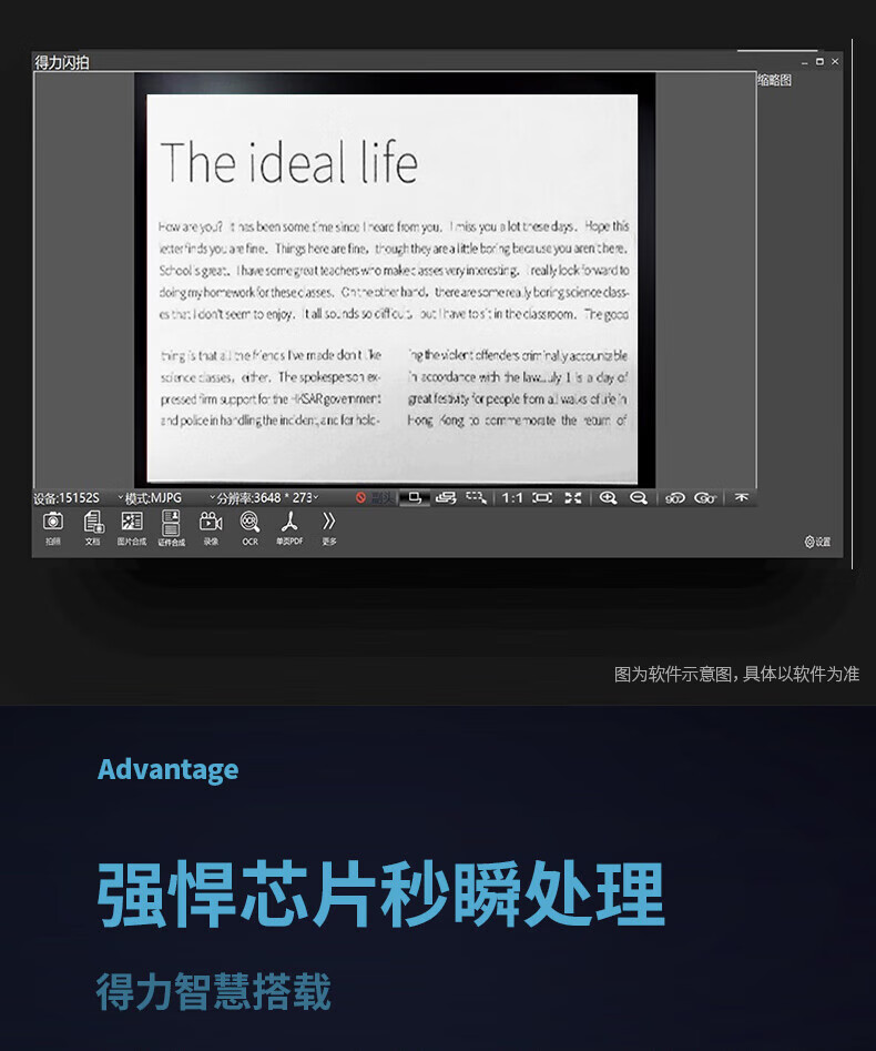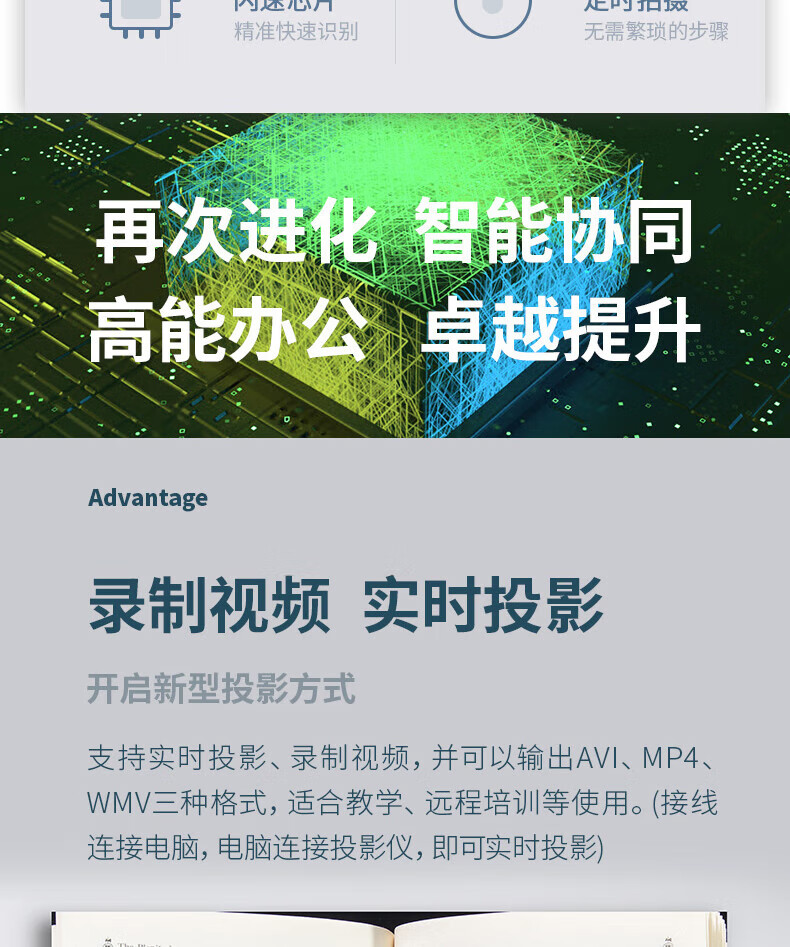 得力(deli) 高拍仪扫描仪 实时投影 办公文件文档连续扫描证件照片身份证 1500万+200万双摄 A4硬底 15156