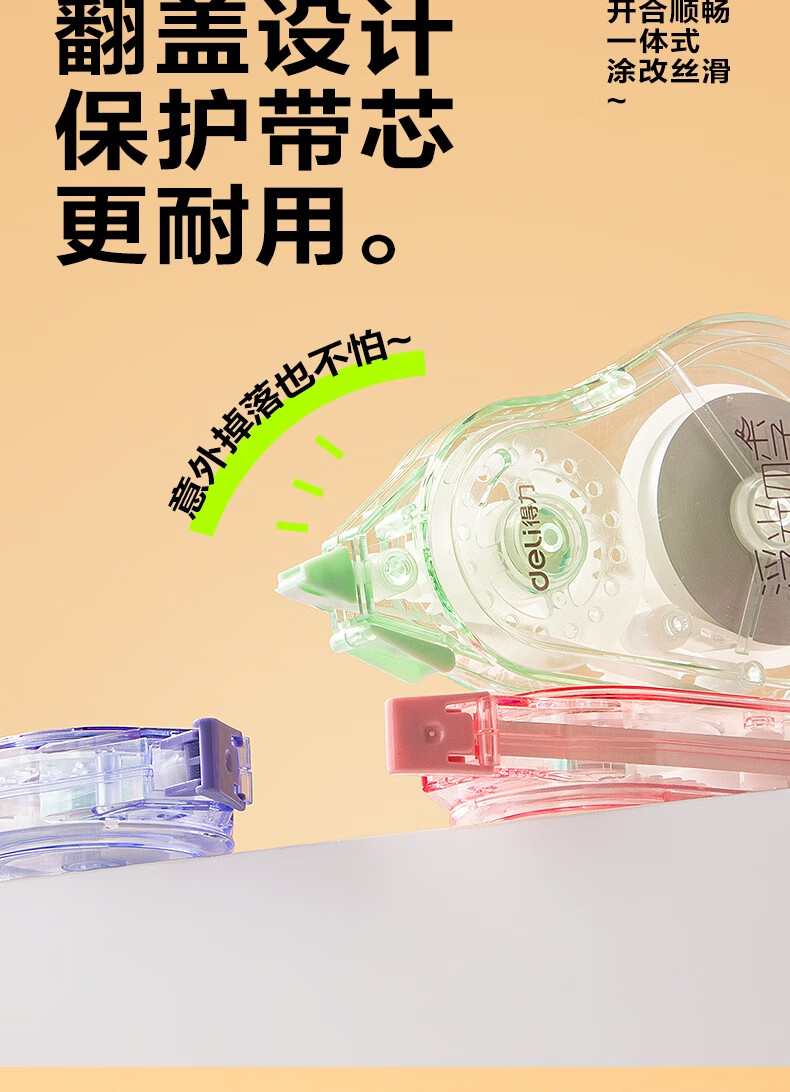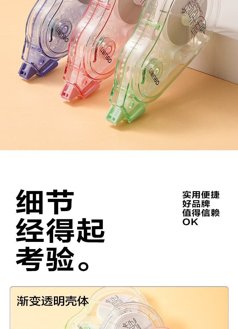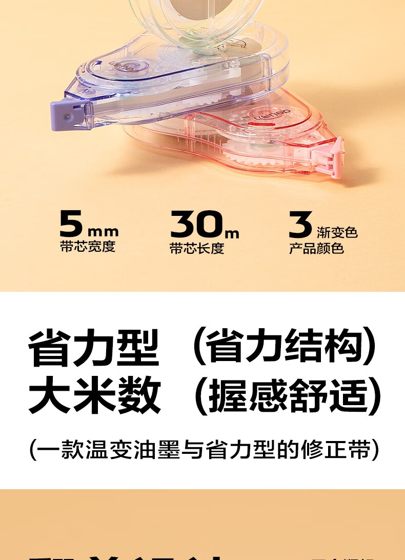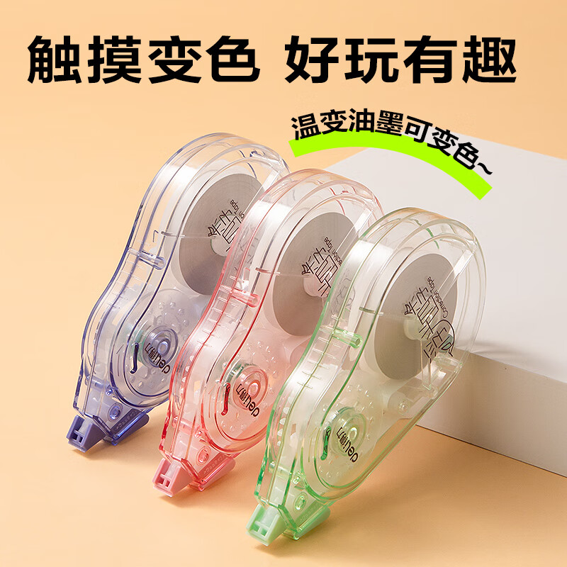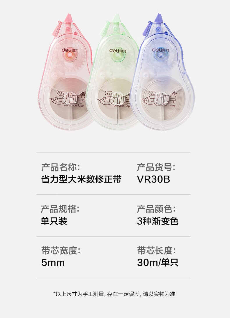 得力(deli)省力型大米数修正带 渐变彩色 浮光四级 温变墨油修正带 30米 颜色随机发货 VR30B修正带