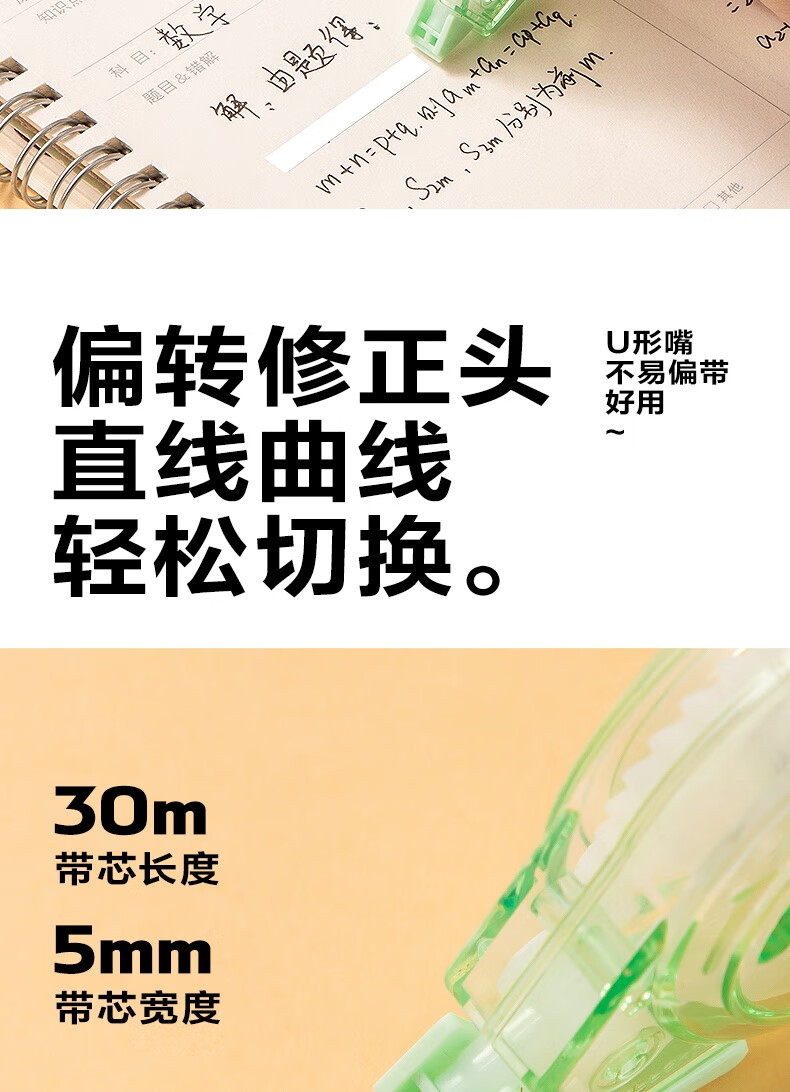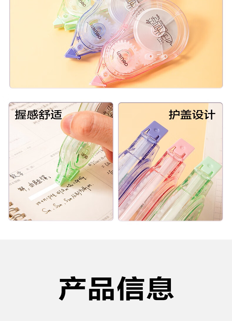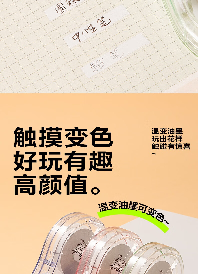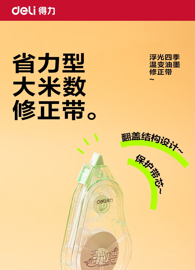 得力(deli)省力型大米数修正带 渐变彩色 浮光四级 温变墨油修正带 30米 颜色随机发货 VR30B修正带
