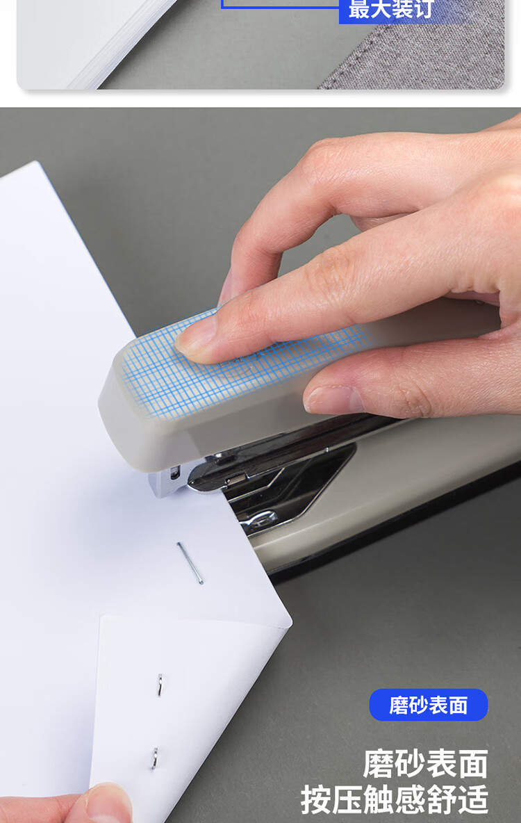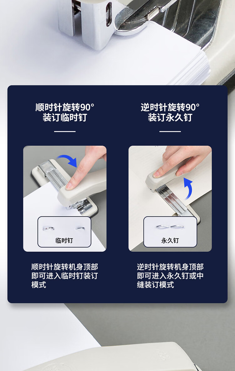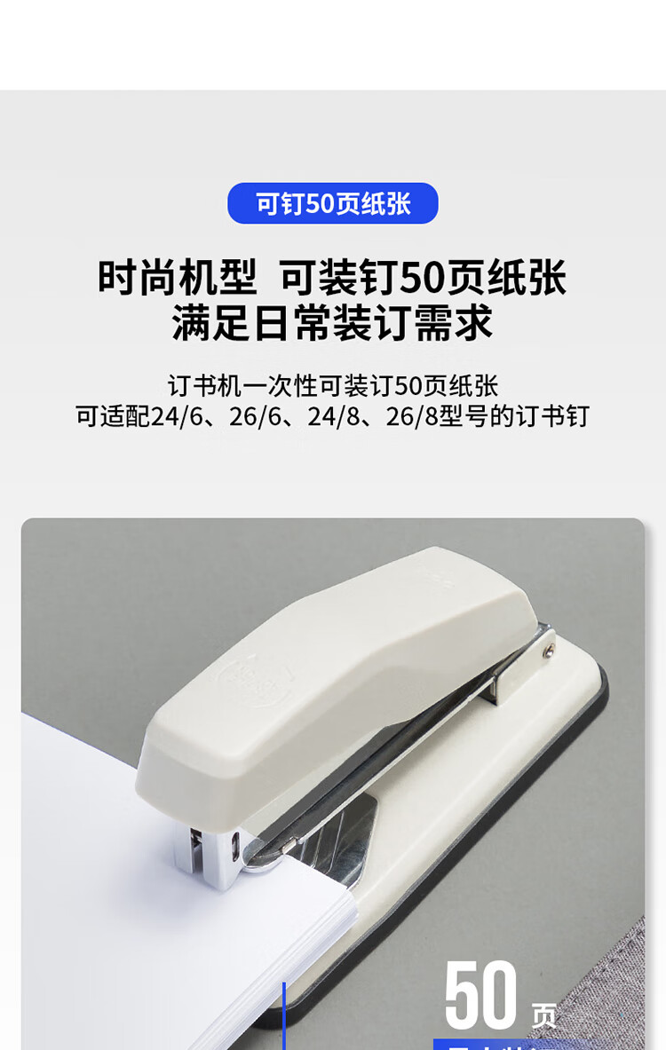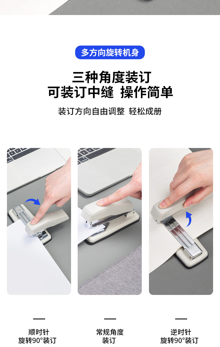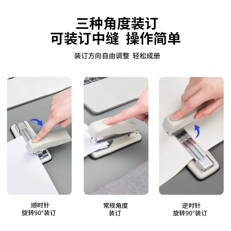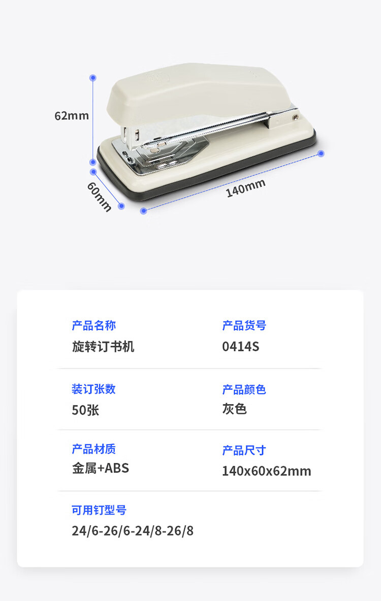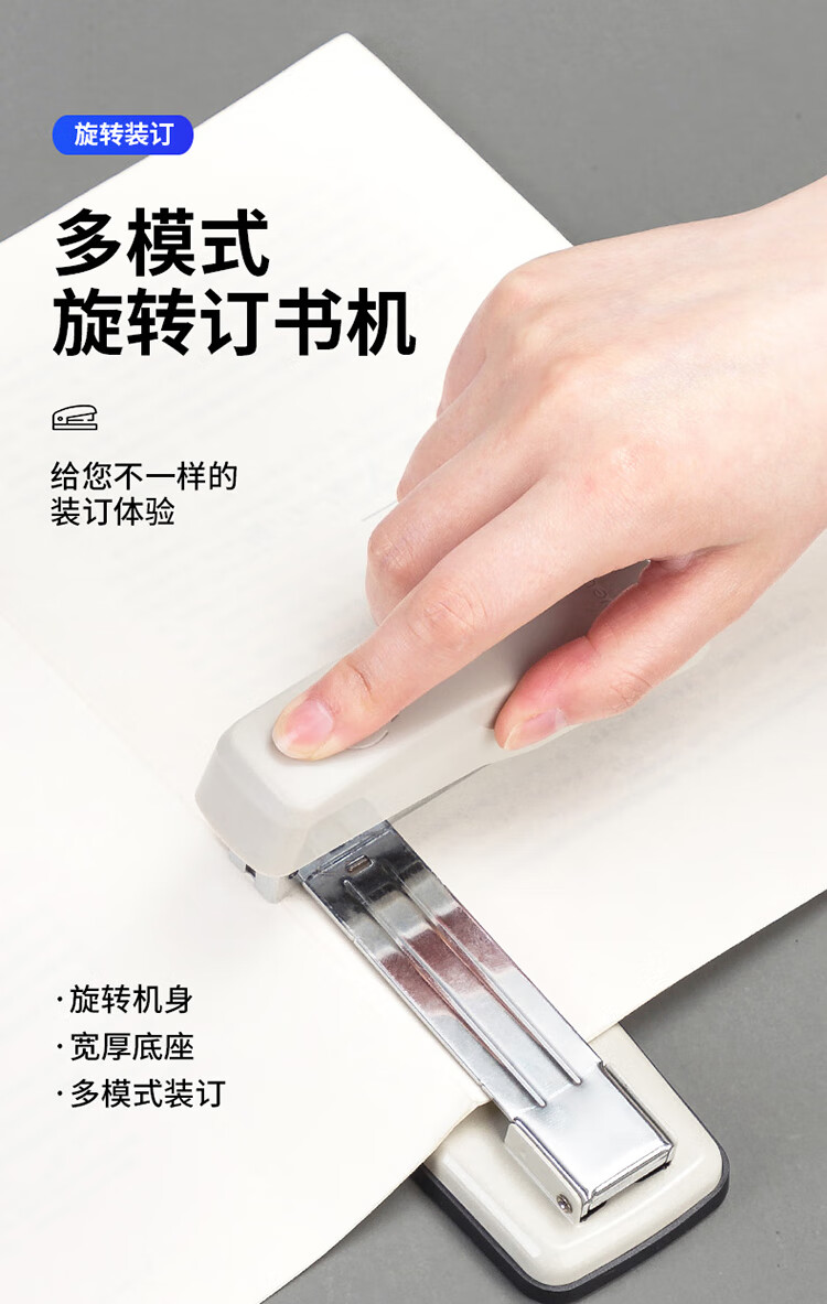 得力(deli)50页旋转式订书机订书器厚层订书机小号 中缝装订 办公用品 灰色0414S(不带订书钉)