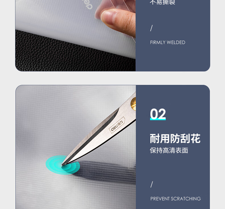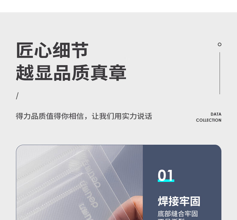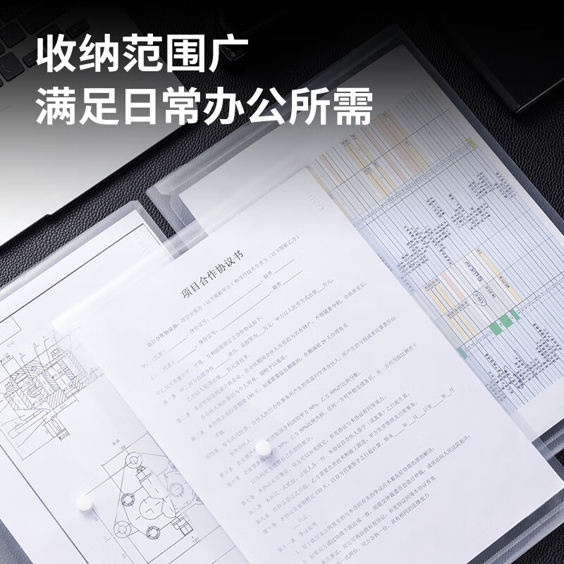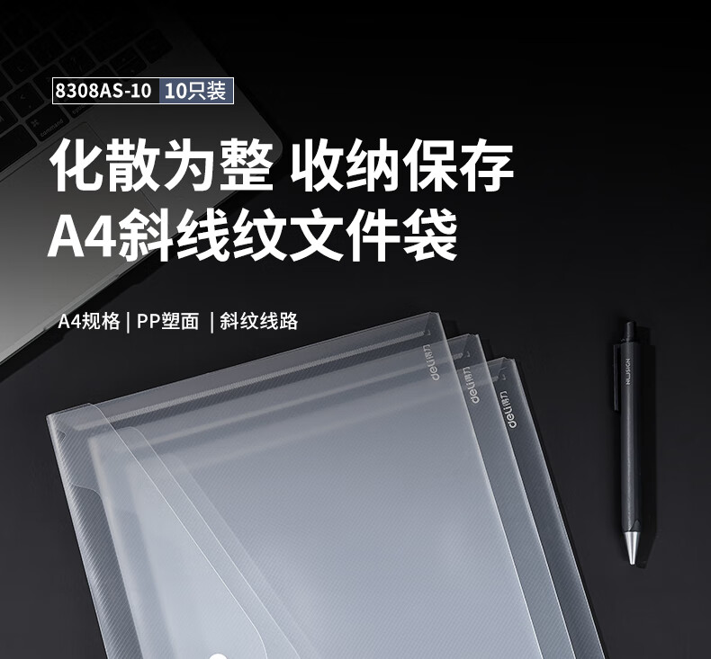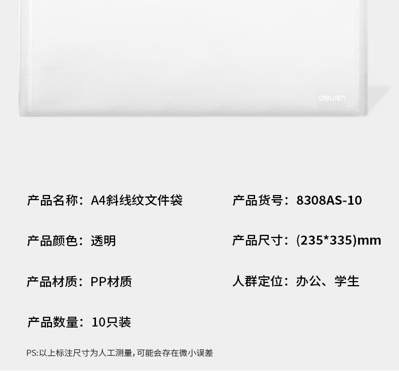 得力(deli)10只A4透明文件袋 斜纹印花按扣档案袋资料袋票据文件保护 学生试卷收纳袋 学习用品 8308AS-10