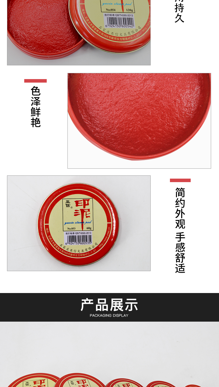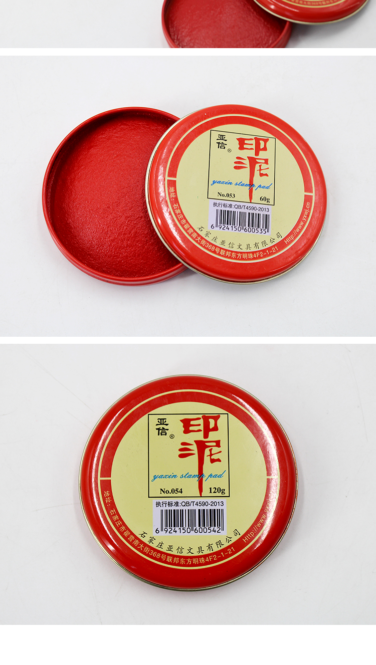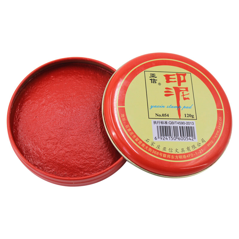 亚信(Arxin)No.054 红色印泥120g 盖章指纹印泥圆形铁盒印台 财务办公用品90*19mm