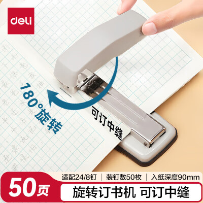 得力(deli)50页旋转式订书机订书器厚层订书机小号 中缝装订 办公用品 灰色0414S(不带订书钉)