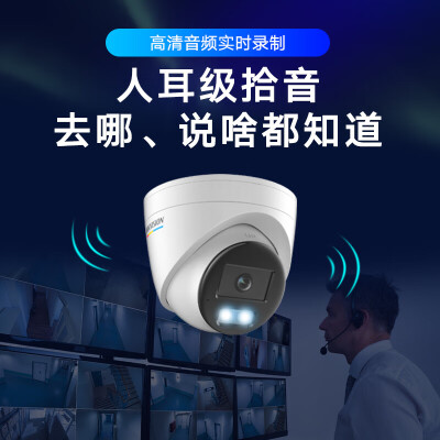HIKVISION海康威视监控摄像头臻全彩夜视400万室内室外2K超清日夜全彩可录音POE网线供电半球HK-E2P4L-P4MM