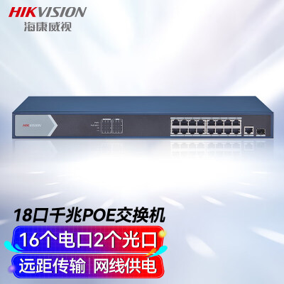 HIKVISION海康威视交换机16口POE 18口全千兆交换机网线分流网络集线分线器金属外壳POE交换机DS-3E0518P-E